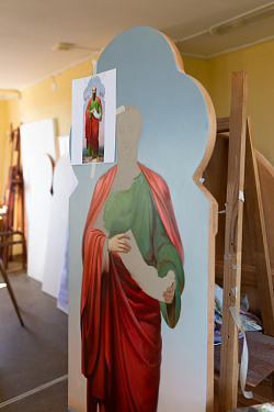 - Конечно, важно. Я ставлю такую задачу перед художниками. Если мы пишем икону, то это не просто изображение какого-то человека. Это во времени живущий человек. Существующий. Только не на земле, а на небе. Если мы так воспринимаем окружающий мир и сюжет иконы, то для нас сюжет Троицы вечен. Святого мы пишем, как живого человека. При таком подходе мы соединяемся с его внутренним, духовным миром, что позволяет нам лучше прочувствовать образ. Это, прежде всего, касается ликов, рук, движений, общего замысла. Я согласен, что работа над написанием образа делится на составные части: рисунок, написание фонов, неба, позема, драпировок. Но самая сложная часть работы – написание лика. Если мы не увидим лика, то всё остальное не имеет значения. Мы будем понимать, к примеру, что по символике это – апостол Павел. Но, поскольку лика мы не увидим, то не сможем молиться перед такой иконой. А если сохранятся только лики, как у Андрея Рублева в Звенигородском чине, то такая возможность останется. На трех его иконах - только лики, нет одежды, фона, надписей, рук. А полнота звучания иконы сохранилась.