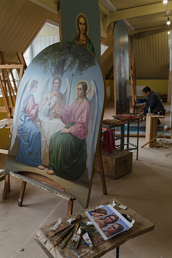 - Классическое образование позволяет перейти к религиозной живописи. Ещё во время учебы в Академии художников приглашают в бригады, которые занимаются росписью храмов. База школы позволяет адаптироваться к храмовой живописи. Условный реализм иконописи имеет особенности, которые художник изучает на практике. Попадая в команду, начинающий иконописец, как губка, впитывает знания, полученные от коллег и бригадира. Он пробует себя, и уже понимает, стоит ли двигаться в этом направлении, или нет.