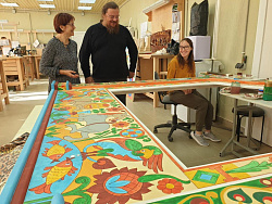 Такую задачу я поставил перед мастерской «Палехский Иконостас». Подчеркну еще раз, очень важно, чтобы одна команда занималась решением этого вопроса. Приведу пример с художниками, расписывающими храмы. Когда они пишут, весь храм перекрыт лесами, и поэтому общую картину понять крайне сложно. И когда наступает момент истины, снимаются леса, сами художники зачастую говорят, неужели мы это сделали?! Настолько всё промыслительно! И в этот момент каждый из них осознает, что, вкладывая свою энергию, умения, знания, он является частью какого-то замысла, он – творец!
