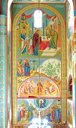 - Была поставлена следующая задача – росписи по тону должны приближаться к фрескам Дионисия, а иконопись – к иконам Андрея Рублева. Тона получились светлые, легкие. И, конечно, нашлись скептики. Люди не понимали, что, только увидев цельную картину, можно будет судить, правы мы были или ошиблись. Приходилось всё время убеждать, что мы двигаемся в нужном ключе.