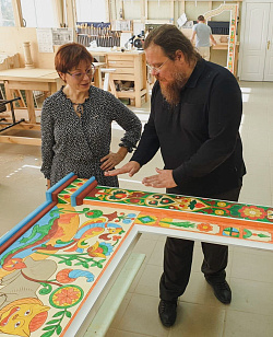 - Конечно. Бедные палешане! Я им безмерно благодарен за терпение. Это же титанический труд - исследование, научная работа, поиск нужных тонов, бесконечные выкрасы… Мы искали тона и нашли их. А сколько было сделано до этого?! Сколько мучений! Я благодарен всему коллективу мастерской «Палехский Иконостас», что они с пониманием отнеслись к моим идеям, и вместе со мной шаг за шагом шли в нужном направлении. И когда было найдено идеальное сочетание, работа пошла быстрее. Тогда у наших инвесторов не осталось никаких сомнений относительно правильного пути.