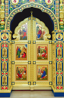 Кроме того, многие художественные моменты зависят от особенностей региона, где находится храм. К примеру, один из цветов флага города, для которого сейчас выполняем иконостас, - зеленый. Его заказчик выбрал основным цветом. В Астрахани главный цвет – синий. Если обратиться к иконостасам, выполненным для европейской части страны, то чаще всего это классические спокойные тона, светлые, либо мореные «под красное дерево». В каждом регионе свой менталитет и национальные особенности, которые не в меньшей степени влияют на художественное решение проекта.
