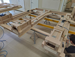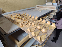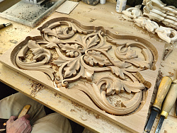 В данном проекте выполнили иконостас, иконные доски и сейчас приступили к изготовлению двух клиросных киотов.