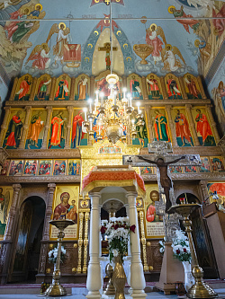 В 2020 г. мы выполнили отделочные работы – заменили полы, зашпаклевали стены, изготовили и смонтировали новый иконостас из бука, в 2021 г. написали и смонтировали иконы, в 2022 г. расписали храм.