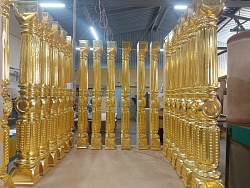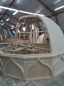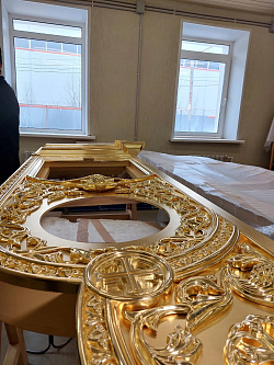 Краски яркие, насыщенные, все лики, детали святых образов тщательно выписаны. Преображение Никольского храма продолжается. Сейчас в Палехе Ивановской области на базе художественно-производственной мастерской изготавливается внутреннее храмовое убранство. Специалисты трудятся над созданием иконостаса, который будет отделять алтарную часть от остального пространства храма. Иконостас, который выполняют для Никольского храма, отличается сложностью конфигурации и солидными габаритами – высота в самой высокой части 15,3 м, ширина – около 40 м. Кроме того, частью иконостаса станет кувуклия – своего рода часовня, сделанная по аналогии с похожим сооружением в храме Христа Спасителя в Москве. Над созданием такой сложной конструкции трудятся архитекторы, резчики по дереву, позолотчики, иконописцы.