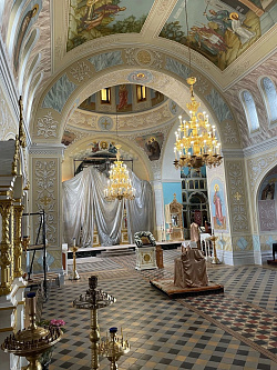 К Пасхе расписали центральный придел Свято-Петропавловского Кафедрального собора в Луганске.