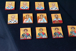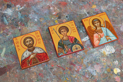 В наличии карманные рукописные иконы 5*6 см: образы Спаса Нерукотворного, Ангела-Хранителя, святых Николая Чудотворца, Георгия Победоносца, Александра Невского в палехском стиле.