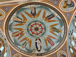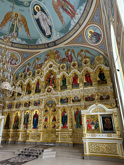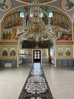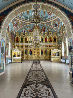 В марте прошлого года смонтировали иконостас, в апреле – утварь (клиросные, запрестольный киоты, жертвенник, дьяконник, престол, аналои), а в июне приступили к росписи стен.