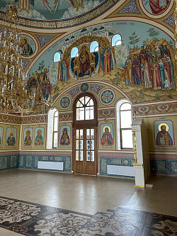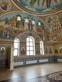 В минувшие выходные закончили роспись храма в Курской области. Храм Николая Чудотворца оформили комплексно.