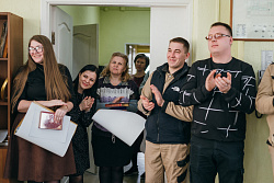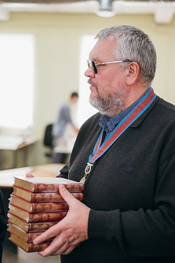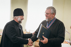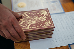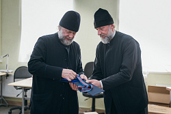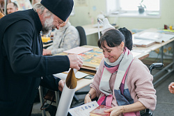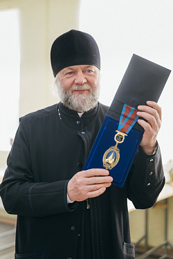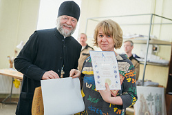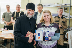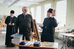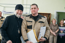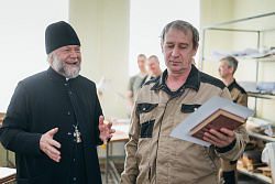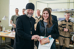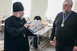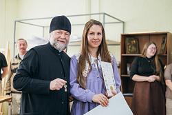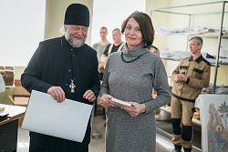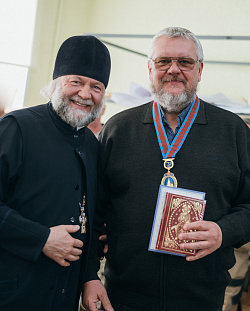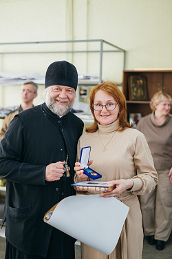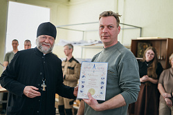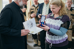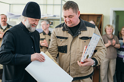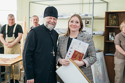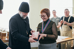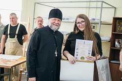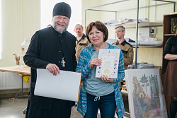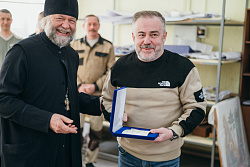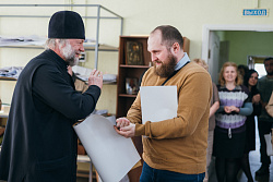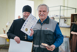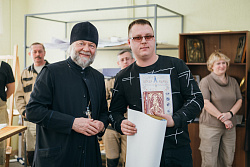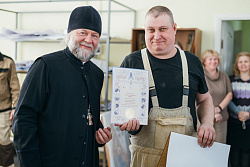 Протоиерей Фёодор Повный лично поблагодарил за труд и вручил награды сотрудникам мастерской, как руководителям направлений, так и мастерам разных профилей – иконописцам, архитекторам, столярам.