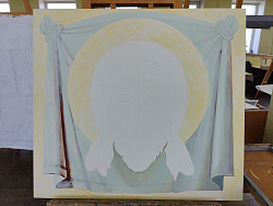 - Это восстанавливающийся храм. Заказчик поставил задачу написать живоподобные лики, чтобы взгляд святого из любой точки храма обращался к молящемуся. Для выполнения этой задачи мы предложили академический стиль письма.