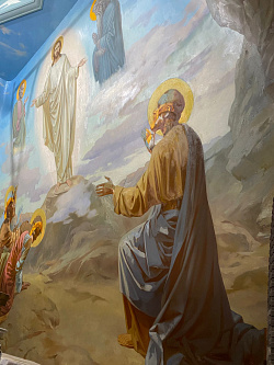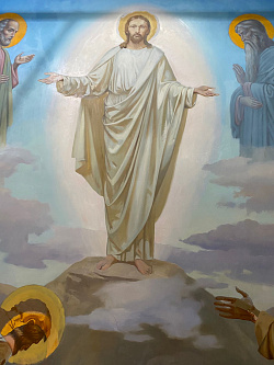 Сюжеты классические. В алтаре Богородица «Знамение». На восточной стене – Благовещение. И четыре композиции двунадесятых праздников – Рождество Христово, Крещение Господне, Воскресение Христово и Преображение Господне.