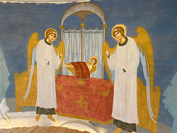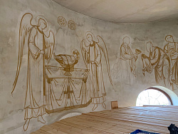 Если в Часовне композиции миниатюрные, живопись можно рассмотреть на расстоянии вытянутой руки, здесь – живопись более условная.