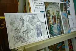 "Потолок трапезной части будет посвящен житию Петра и Павла, остальные стены - верхняя часть, южная и северная стены, боковые части - будут посвящены сценам из жизни Пресвятой Богородицы. При этом нижний регистр росписи - местночтимым святым", - сказал руководитель мастерской.