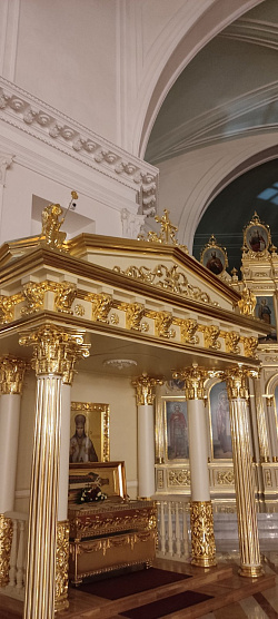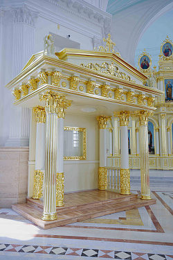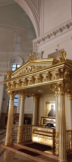Сюда мы спроектировали, изготовили и смонтировали иконостас и две сени с киотами.