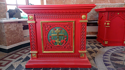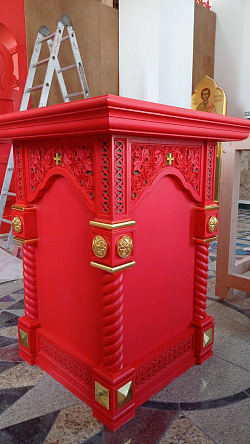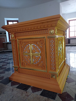 В комплекте к каждому иконостасу изготовлены аналой, престол, жертвенник.