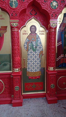 Верхний храм посвящен св. влкм. Пантелеймону, нижний – св. Иннокентию Иркутскому.