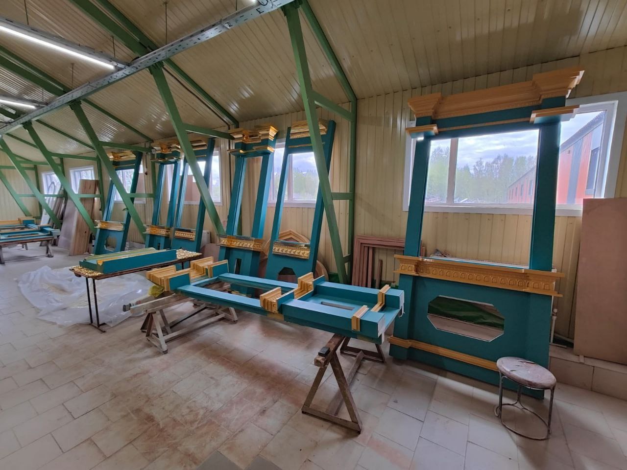 Смонтировали иконостас в трапезном храме д. Акулинино.