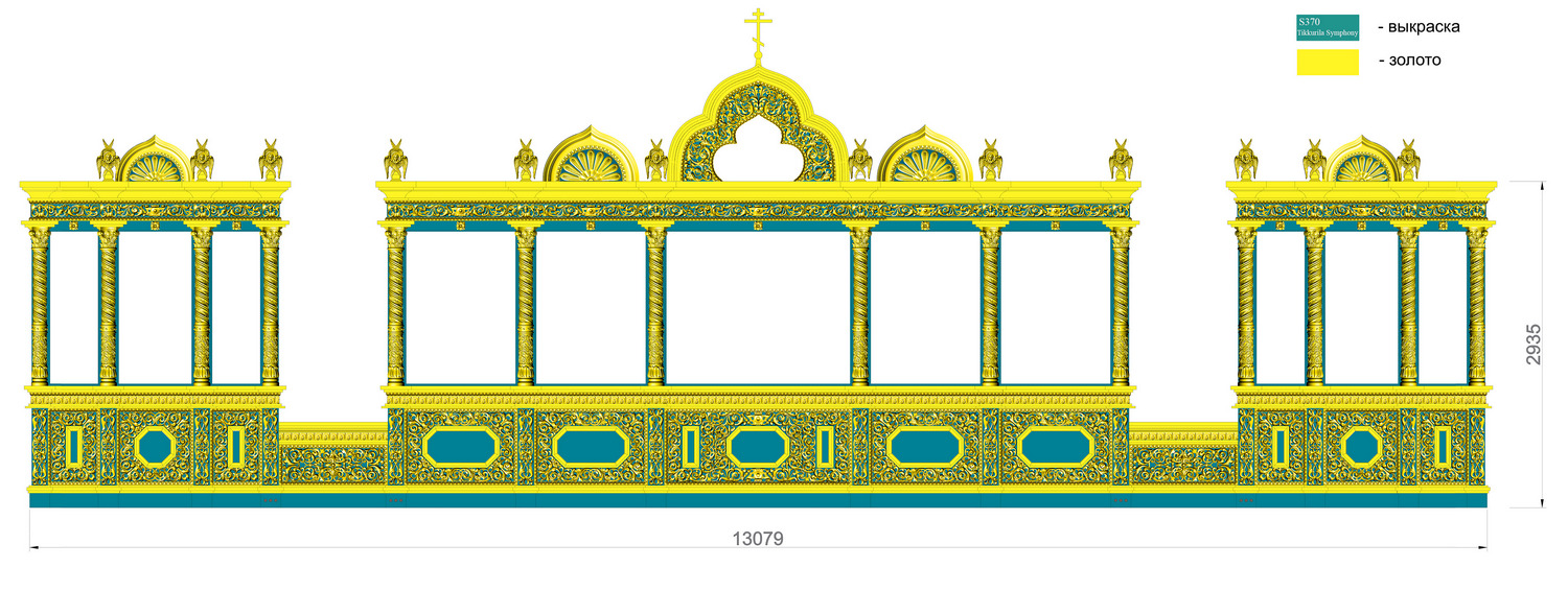 Размеры иконостаса: 13 029 × 2 935 мм.