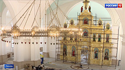 Величественный трехъярусный иконостас в стиле ампир торжественно смотрится в свете сотен светильников и белоснежном окружении изящных колонн. Тысячи деталей, покрытых сусальным золотом, крепятся вручную нашими мастерами, постепенно преображая иконостас. Четкость строгих пропорций, сдержанность тонов в покраске, роскошные вызолоченные орнаменты, присущие эпохе ампира, отличают иконостас Пензенского собора. Иконы написаны в академическом стиле. Всего в иконостасе разместят 85 икон, в том числе – изображения местночтимых святых в левом и правом приделах.