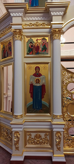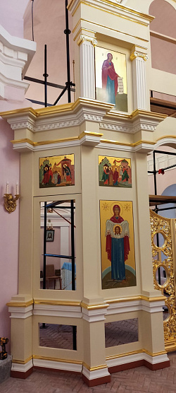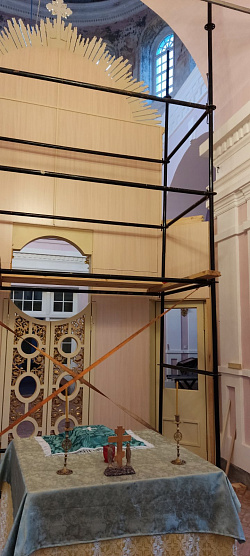 Иконостас изготовили в очень сжатые сроки, всего за 4 месяца. Смонтировали в стандартные 3-4 дня, с учетом непрекращающихся богослужений.