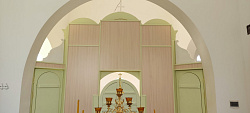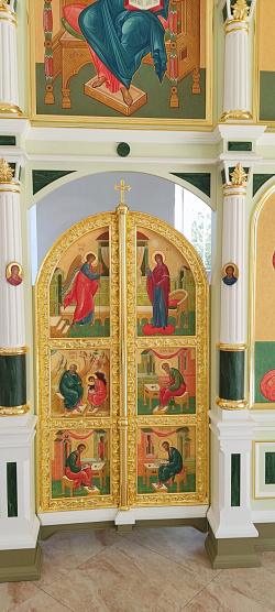 Так, к примеру, в минувшие выходные смонтировали иконостас в Никольский храм Ростовской области. Двухъярусный иконостас с частичным золочением и выкраской фонов выполнили в стиле эклектики. Колонны отсылают к классицизму, царские врата к стилю барокко. Форма иконостаса – ломаная, что обусловлено архитектурой храма. За счет такой формы удалось расширить пространство алтаря и увеличить размеры дьяконских дверей для нормального функционирования. Грамотная организация пространства алтаря – залог удобства в служении священника.