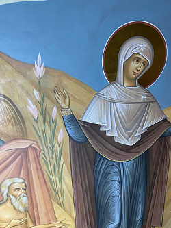 - Храм посвящен св. преп. Марии Египетской. Есть временный иконостас из гипсокартона. У нас идея – добавить больше света в храм, за счет росписи иконостаса под мрамор, и отражения света, правильно подобранных пропорций светлого и темного в росписях. Сюжетная линия будет строится на житии святой.