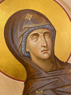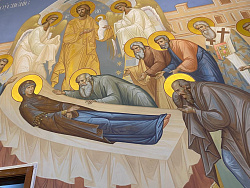 Центральная композиция — Успение Пресвятой Богородицы — написана на западной стене и завершает общий замысел росписи.