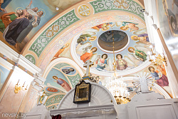 - Участвовал в процессе, но не на все 100%. Всё-таки это вопрос доверия иконописцам. Могу сказать, что сейчас храм расписан с соблюдением всех канонов. С дореволюционных времен сохранилось много намоленных икон. И важно было связать историю с настоящим. Новыми росписями художникам удалось подчеркнуть особенности храмовых архитектурных форм.