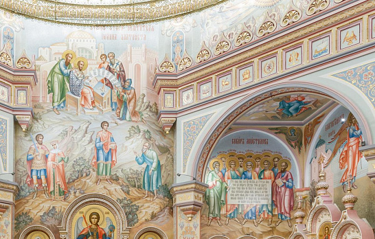 Идея распятия центрального придела Всехсвятского храма родилась в Казани. Мы делали запрестольный образ, двухстороннюю икону, на одной стороне которой – Спаситель на троне, а на второй - Распятие. По задумке икона оборачивается вокруг своей оси, в пост – Распятием, в остальные дни – Спасом на троне.
