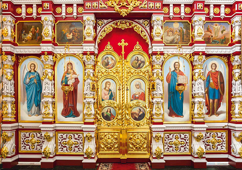 Количество ярусов в иконостасе зависит от размеров храма, дизайн-проекта, задачи. Иконостас может быть одноярусным и многоярусным.