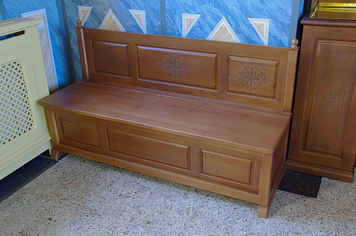 Проектируем и изготавливаем на заказ полный перечень необходимой храмовой мебели в единой стилистике с иконостасом и храмовой утварью.